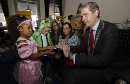DORDRECHT – Jacqueline van Zanten en haar dochter Loes (18) hebben samen een tweede boek gemaakt: Loesje bij de Koning. Het eerste exemplaar van het boek, dat bedoeld is voor kinderen en volwassenen, is gisteren overhandigd aan burgemeester Wouter Kolff in het bijzijn van kleuters van basisschool De Fontein uit Wielwijk. (Foto’s: Thymen Stolk)