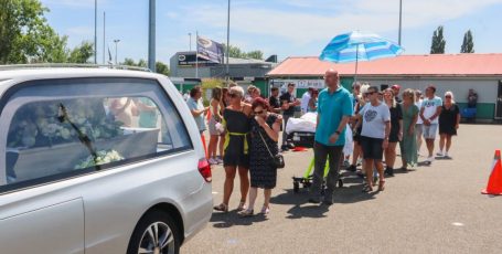 DORDRECHT – Aanhangers van FC Dordrecht hebben woensdagmiddag op indrukwekkende wijze afscheid genomen van supporter en vrijwilliger Maarten van Efferen. De 73-jarige Van Efferen overleed afgelopen zondag na een kort ziekbed. Met een mooi en emotioneel afscheid passeerde de familie nog een keer het stadion aan de Krommedijk. Na indrukwekkende momenten op de parkeerplaats voor het supportshome werd Maarten in kleine kring gecremeerd.(Foto en video: Thymen Stolk)