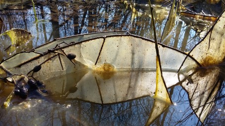 DORDRECHT – Heuse kunstwerken ontstonden er vorige week door het zakkende water in plassen in boswachterij De Elzen. ‘De eerst drijvende algen vormen een vlies tussen de takken, waar het zonlicht prachtig doorheen schijnt’, schrijft Cees Mastenbroek, die de foto maakte.