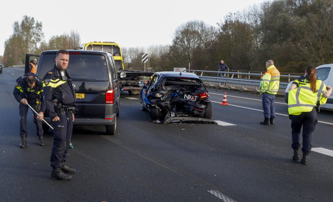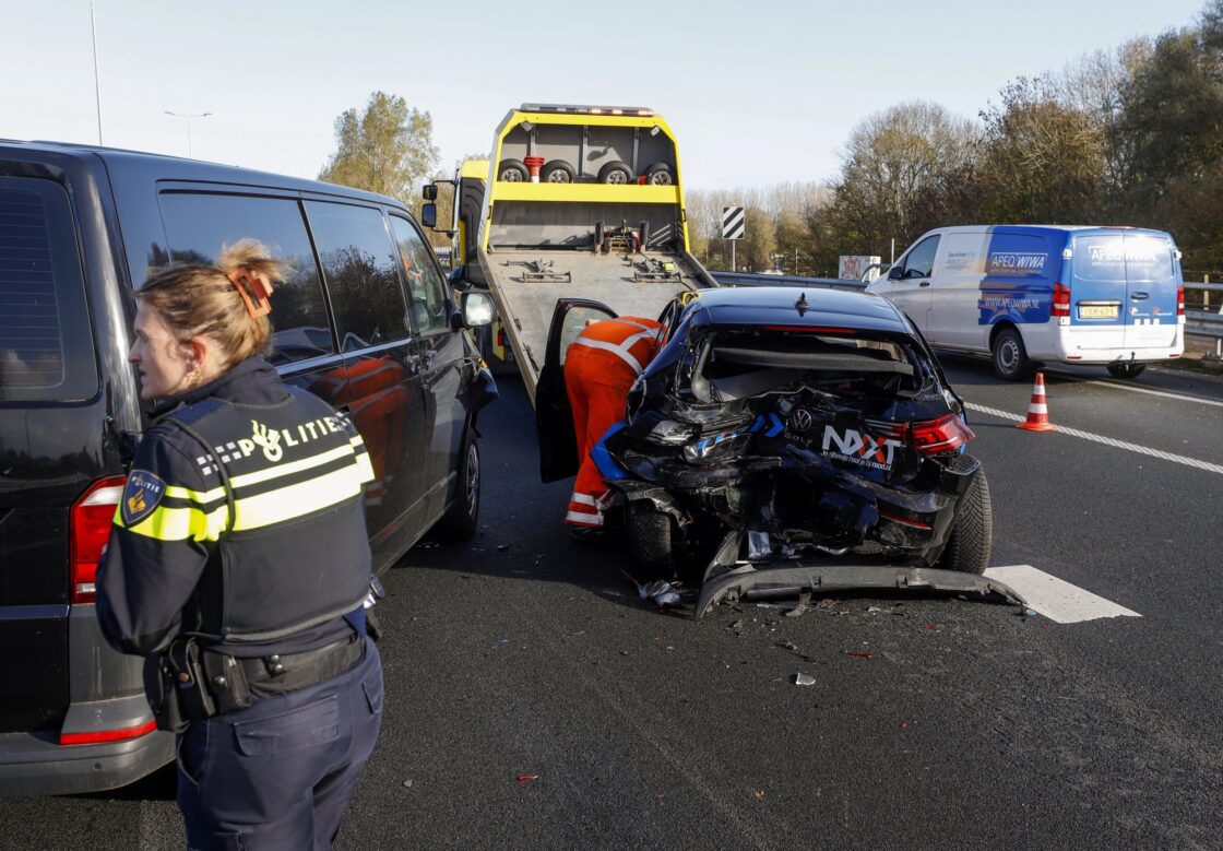 DORDRECHT – Op de N3 ter hoogte van de oprit Stadspolders richting Papendrecht is maandag een persoon gewond geraakt bij een botsing met drie voertuigen. Eén van de geraakte auto’s is een lesauto. De instructeur is daarbij gewond geraakt. (Foto’s: Stolk Fotografie)