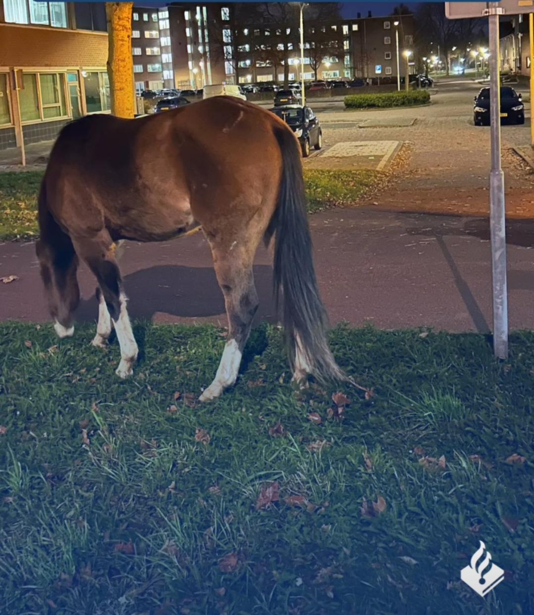 PAPENDRECHT – In Papendrecht zijn maandagochtend vroeg twee paarden ontsnapt uit een manege, waarna ze een onverwachte tocht door de stad maakten. De dieren draafden onder meer over de Burgemeester Keijzerweg en de Veerweg, en trokken vervolgens een nabijgelegen woonwijk in. ( Foto: Politie Drechtsteden )