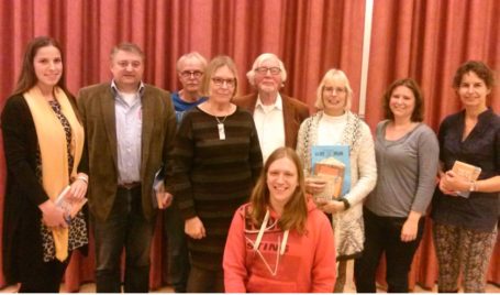PAPENDRECHT – Er schreven woensdagavond 37 taalminnaars mee met het voor de tweede keer door Bianca Nederlof ontworpen Groot Papendrechts Dictee met de titel ‘Onlinedatingperikelen’. Het werd ook nu weer op eigen, frisse wijze door Bert Lock gelezen. Organisator van de inmiddels traditionele spellingproeve in zalencomplex De Palm was weer de sectie Letteren van de Culturele Raad Papendrecht en zij mocht constateren dat het GPD blijft floreren in de regio Drechtsteden en Alblasserwaard. Het verhaal van Bianca bevatte veel voetangels en klemmen als ICT’er, in levenden lijve, kladderadatsch, Sri Lankaan, blocnoteje, pro-Deoadvocaat, louche, adellijke en rendez-vous. De jury, onder leiding van Piet Kaptein, kwam na correctie tot de vaststelling dat zes dicteegangers met de eer mochten gaan strijken. Met maar drie fouten scoorde Dordtenaar Randy van Halen net als vorig jaar het best. Hij werd op gepaste afstand gevolgd door Elly Kranendonk (Alblasserdam), Claudia Bossenbroek (Streefkerk), Els Verberkmoes (Papendrecht) en Papendrechters Inge Kooijman en Ruud Lammerse. De gemiddelde score lag op zeventien fouten. De deelnemers varieerden in leeftijd van 16 tot 77 jaar.