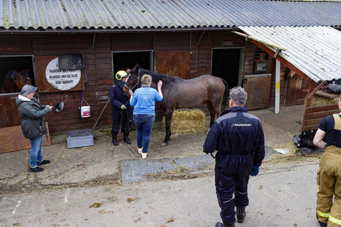 Brandweerlieden deden na aankomst verschillende pogingen om het paard weer op de been te krijgen, maar dat bleek niet eenvoudig. Met behulp van een gespecialiseerd team met extra hulpverleningsspullen werd het paard uit zijn stal getrokken. Toen het dier eenmaal tot rust was gekomen en weer voldoende kracht had, wist het alsnog zelfstandig op te staan. Over de toestand van het paard is niets bekend.