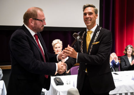 PAPENDRECHT – Tijdens een bijzondere raadsvergadering is woensdag Aart-Jan Moerkerke geïnstalleerd en beëdigd door Commissaris van de Koning van Zuid-Holland Smit als burgemeester van Papendrecht. Aansluitend aan de raadsvergadering was er gelegenheid voor inwoners en andere belangstellenden om Moerkerke (51) persoonlijk te feliciteren. Gisteren verrichtte hij zijn eerste officiële handeling: de aftrap van de SamenLoop voor Hoop 2017. De nieuwe burgemeester wil graag zo snel mogelijk kennismaken met de Papendrechters. In onder meer een filmpje op YouTube nodigt hij iedereen uit voor een kennismaking bij mensen thuis, op het werk, of bij de (sport)club.