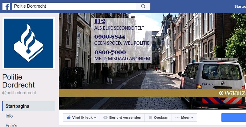 DORDRECHT – Aankomende vrijdag 7 oktober organiseert de Dordtse politie een Facebookspreekuur.Tijdens het spreekuur zitten diverse agenten klaar om de vragen te beantwoorden. Het is voor het eerst dat de politie Dordrecht op deze manier een spreekuur organiseert en ziet deze editie dan ook als proef. Het spreekuur vindt plaats van 17:00 uur tot 18:00 uur. Er kunnen op Facebook geen meldingen gedaan worden.