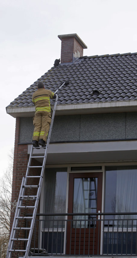 DORDRECHT – De brandweer werd vanmorgen door een bewoonster van de Mees Toxopeusstraat in Wielwijk gebeld voor een reddingsoperatie. Haar vijf maanden oude kitten Magic was via een klein raampje ontsnapt en op het dak geklommen. De brandweermensen probeerden van alles om de kat er vanaf te krijgen, maar dat lukte niet. De zoon van de bewoonster lukte dat uiteindelijk wel door het beestje met een schaaltje voer naar een dakraam te lokken en naar binnen te halen. (Foto’s: Thymen Stolk)