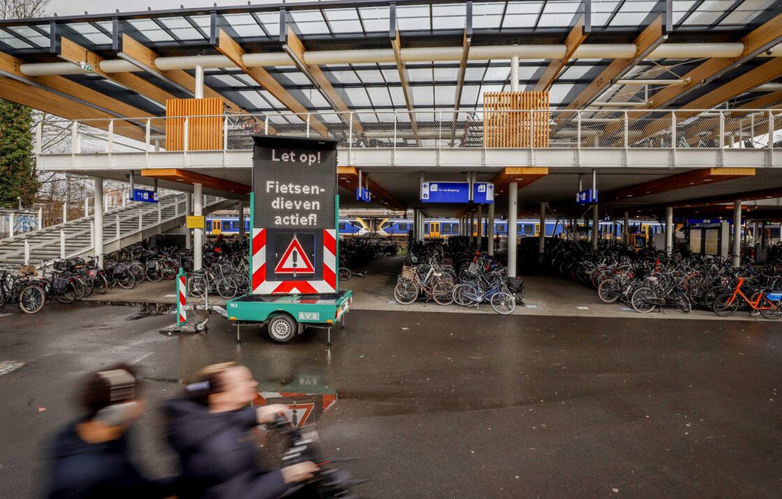 DORDRECHT – Aan de achterkant van station Dordrecht hebben fietsendieven de afgelopen tijd meerdere keren toegeslagen. Reizigers die hun fiets daar stallen, worden daarom extra gewaarschuwd. Sinds kort staat er bij de fietsenstalling een mobiel tekstbord met een duidelijke boodschap: “Let op! Fietsendieven actief! Zet je fiets op slot en ergens aan vast.” ( Foto’s : Stolk Fotografie )