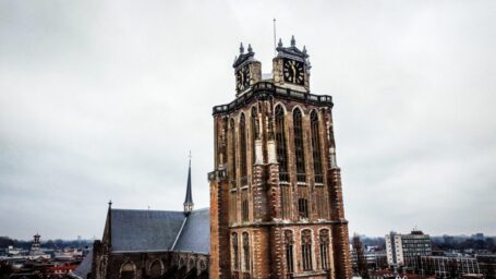 DORDRECHT – De gemeente Dordrecht werkt aan de voorbereiding van een grootschalige restauratie van de toren van de Grote Kerk. In oktober vorig jaar 2025 zijn rondom de toren tijdelijke veiligheidsmaatregelen genomen, nadat inspecties aantoonden dat delen van het toegepaste natuursteen – Ettringer tufsteen – in slechte staat verkeren. Door verwering en scheurvorming bestaat een verhoogd risico dat stukken steen naar beneden vallen. ( Foto’s: Stolk Fotografie )