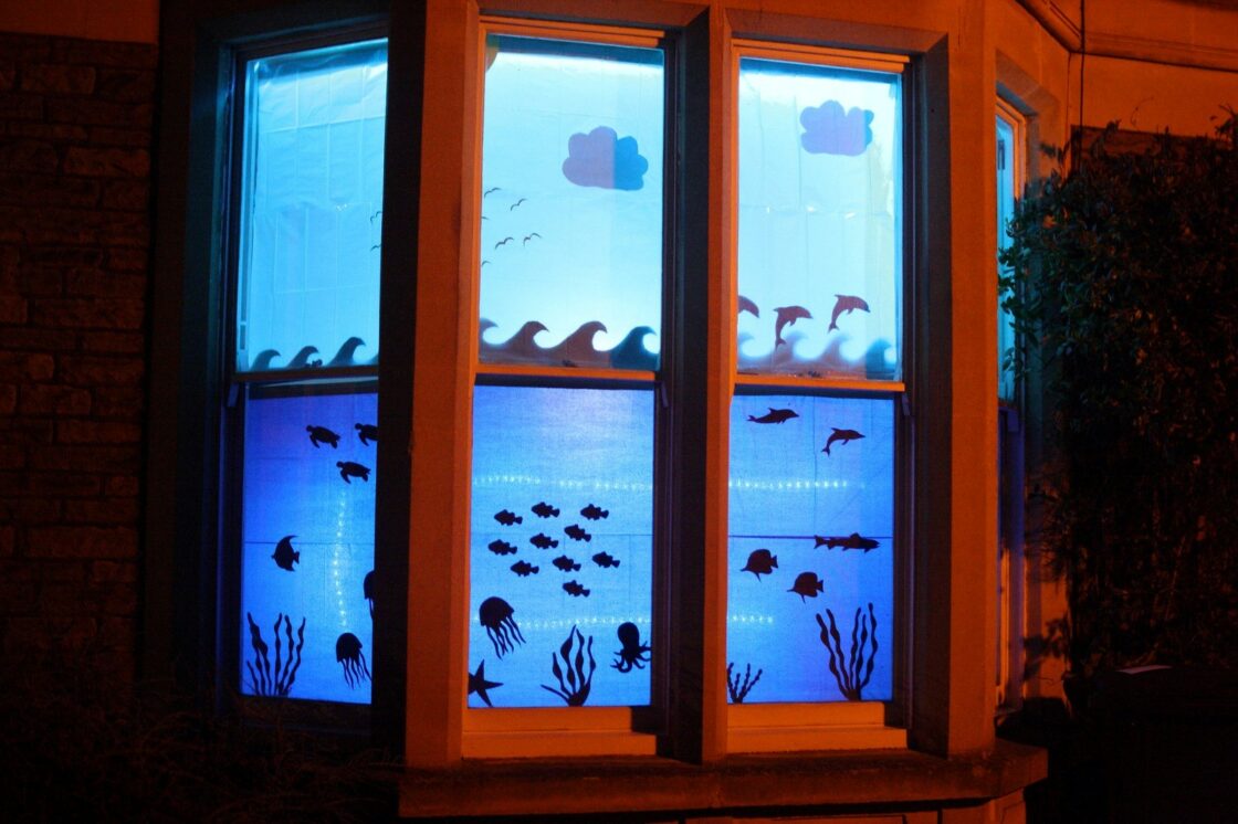 De oproep is om, aansluitend op het thema van het Dwaalspoor, een waterverhaal uit te beelden. Denk aan: golven, bootjes, vissers. Als je jouw ‘verhaal hebt gekozen’, kun je aan de slag. Daarbij heb je nodig: dik (geen lichtdoorlatend) papier, bakpapier (of ander lichtdoorlatend papier), (ruitjes)schetspapier, potlood, schaar, lijmstift en plakband. Je volgt het stappenplan op de website, kiest een geschikte plek voor je silhouet en hangt hem op. Als het rond vijf uur ’s middags donker wordt, zet je het licht achter het silhouet aan en de waterverhalen komen tot leven. Ze vormen een keten van licht. Een keten van verbinding. Iets wat we nu goed kunnen gebruiken.