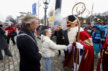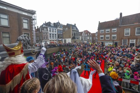 De boten meerden om 12.00 uur aan in de Wolwevershaven/Kuipershaven, waar kinderen samen met presentatrice en grootste Sinterklaasfan Samantha, de burgemeester en de kinderburgemeester de Sint enthousiast ontvingen. Aansluitend trok een kleurrijke parade vol muziek, dans, acts en talloze vrolijke Pieten door de historische binnenstad.