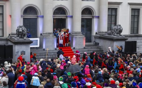 De feestelijke intocht eindigde dit jaar met een groot feest op het Stadhuisplein, met danspieten, muziek en een bijzondere gebeurtenis: twee Pieten die per boot van ’Si Barone’ arriveerden, gaven elkaar op het plein het jawoord. Een unieke afsluiting van een feestelijke dag.
