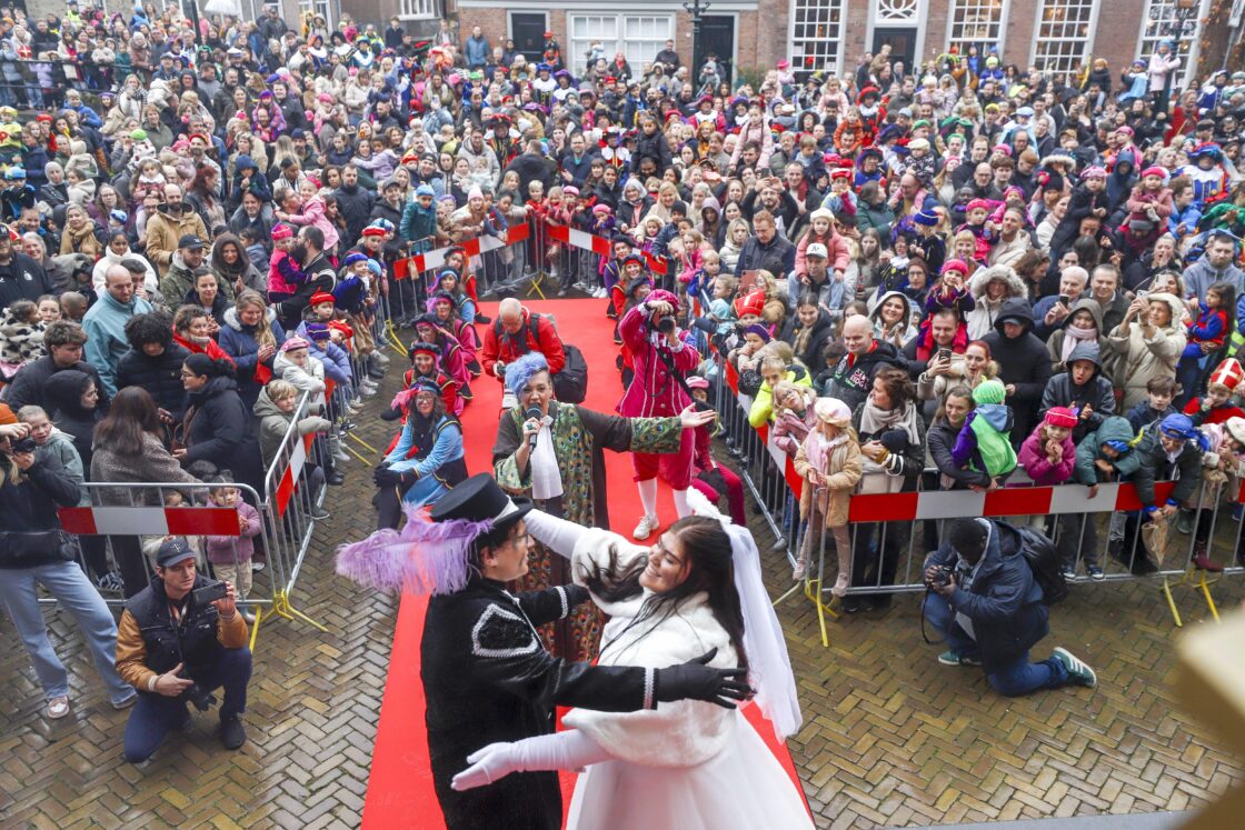 De feestelijke intocht eindigde dit jaar met een groot feest op het Stadhuisplein, met danspieten, muziek en een bijzondere gebeurtenis: twee Pieten die per boot van ’Si Barone’ arriveerden, gaven elkaar op het plein het jawoord. Een unieke afsluiting van een feestelijke dag.