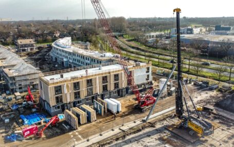 DORDRECHT – Afgelopen vrijdagmiddag werd de start van de bouw van 25 sociale huurwoningen in de nieuwe Dordtse buurt Oudland afgetrapt. Woningcorporatie Trivire, ontwikkelende bouwer Trebbe, de gemeente Dordrecht en omwonenden markeerden de start van de bouw door het begraven van een tijdcapsule met wensen voor de toekomstige bewoners. De 19 driekamer- en 6 vierkamerwoningen worden gebouwd op het terrein van de voormalige voetbalvereniging OMC en zijn onderdeel van een groter nieuwbouwproject. Naast de 25 sociale huurwoningen worden op het terrein, aan de rand van Dubbeldam, ook 50 koopwoningen gebouwd. Trivire en de gemeente Dordrecht investeren niet alleen in woningen, maar ook in het realiseren van een groene buurt met rust en ruimte. Zo krijgt het nieuwbouwcomplex een afgesloten binnentuin, waarin bewoners kunnen recreëren, elkaar ontmoeten en bewegen. ( Dronefoto’s: Stolk Fotografie )