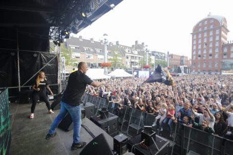 DORDRECHT – Aan het begin van de tweede Big Rivers-dag klaarde de lucht op en stroomde de binnenstad weer vol met muziekliefhebbers. Misschien wel meer dan ooit tevoren. Bij The Kik op de Korte Kalkhaven stond het bomvol, de Grotekerkstuin was afgeladen tijdens de optredens van ijzersterke coverbands die tributes brachten aan onder meer U2, Neil Diamond en AC/DC en het Statenplein stroomde tot de laatste vierkante meter vol tijdens de sets van onder andere Paul Elstak (foto). De sfeer was bij alle podia prima. Enig minpuntje was de arrestatie van vier mensen die ’s avonds op het Statenplein de openbare orde verstoorden. (Foto en video: Thymen Stolk)