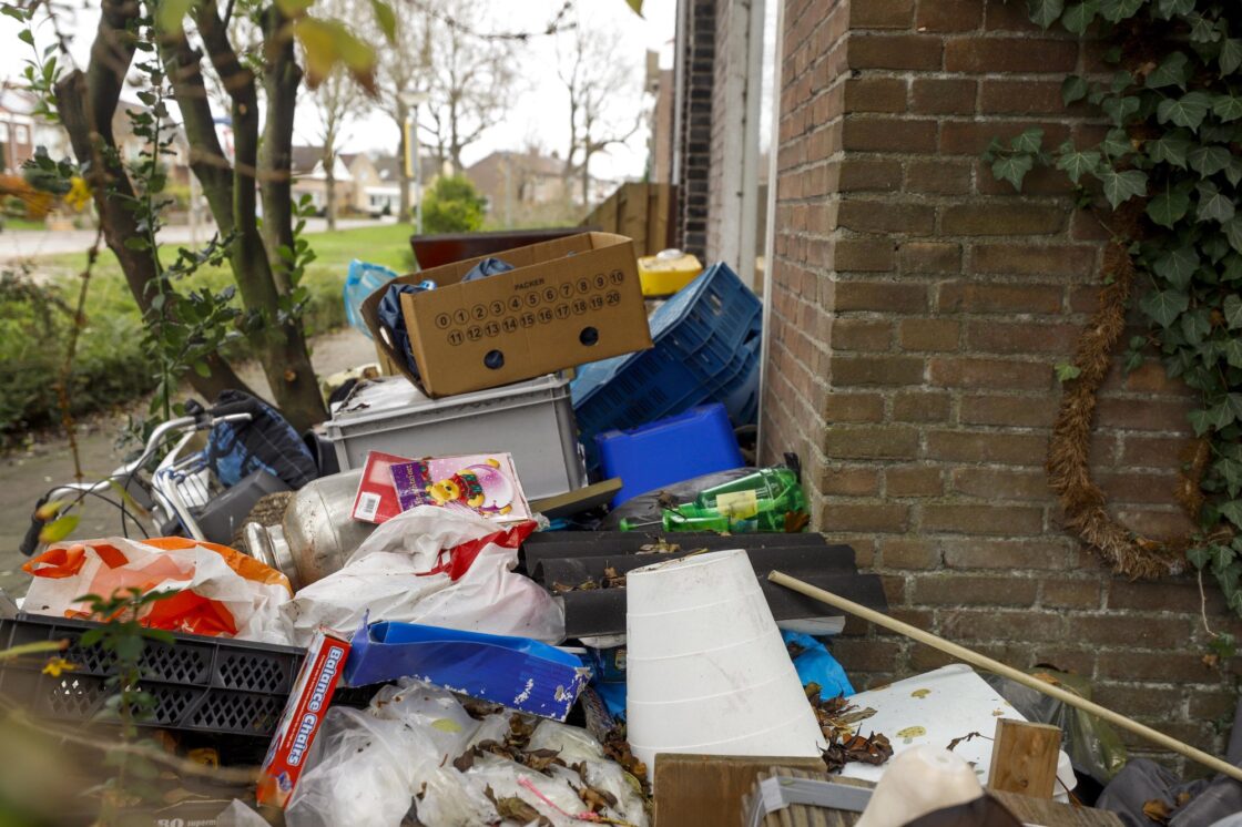 DORDRECHT – Een huis aan de Nijhofflaan is door hulpverleners leeggehaald na over geruime tijd meerdere meldingen te hebben ontvangen van buurtbewoners. Bij de oudere bewoner, die al jarenlang zorg mijdt, is er veel afval en ongedierte in en rondom het huis te vinden. Hulpdiensten zijn naar binnen gegaan om te kijken of de man aanwezig was in de woning en in welke toestand. Hij is ongedeerd aangetroffen. (Foto’s: Stolk Fotografie)