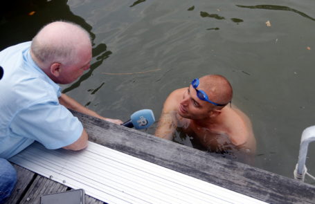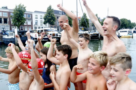 DORDRECHT – Olympisch kampioen Maarten van der Weijden zwom gisteren tijdens de laatste training mee met de deelnemers van de City Swim Dordrecht (Foto’s: Thymen Stolk). Hij kondigde aan dat hij komende zaterdag het evenement in de Dordtse havens zal openen. Dit doet hij niet zomaar: hij start vrijdagnacht om 01.30 uur met een 35 kilometer lange tocht in open water vanaf Hank via de Biesbosch naar de Wolwevershaven.