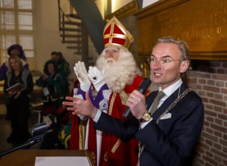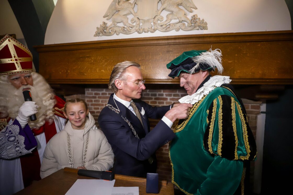 DORDRECHT – Zaterdagmiddag heeft burgemeester Nanning Mol tijdens de feestelijke afsluiting van de intocht van Sinterklaas in het Stadhuis de Johan de Wittspeld uitgereikt aan de heer Wijnand van Geel. De onderscheiding werd uitgereikt in het bijzijn van vrijwilligers, organisatoren en andere betrokkenen bij de Stichting Intocht Sinterklaas. ( Foto’s: Stolk Fotografie )