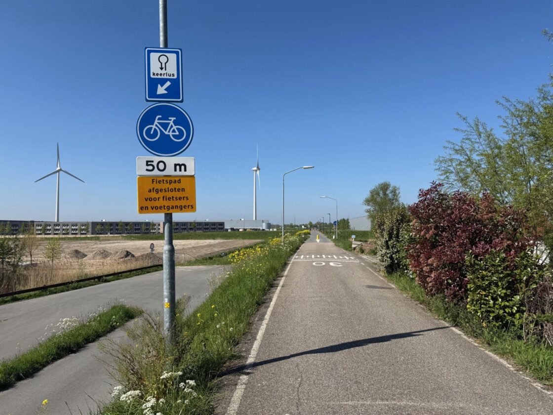 Gestrand bij het hek zit er niets anders op dan omkeren, linksaf de Rijksstraatweg op fietsen en een stuk noordelijker via de Robijn een weg zoeken tussen de bedrijfsgebouwen door. In zuidelijke richting is de Rijksstraatweg vanaf de Wieldrechtse Zeedijk ook voor alle verkeer gesloten. Als het nieuwe wegennet op het Distripark klaar is (volgens planning in 2029) ontstaat een alternatieve route en dan verdwijnt het hek weer.