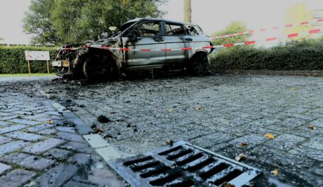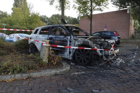 DORDRECHT – In de nacht van woensdag op donderdag is op een parkeerplaats aan de Nagtegaalplaats een personenauto volledig in vlammen opgegaan. Bij aankomst van de brandweer stond de Range Rover al in lichterlaaie. De politie gaat vandaag onderzoek doen naar eventuele sporen. Er bestaat een sterk vermoeden dat het om brandstichting gaat. (Foto’s en video: Thymen Stolk)