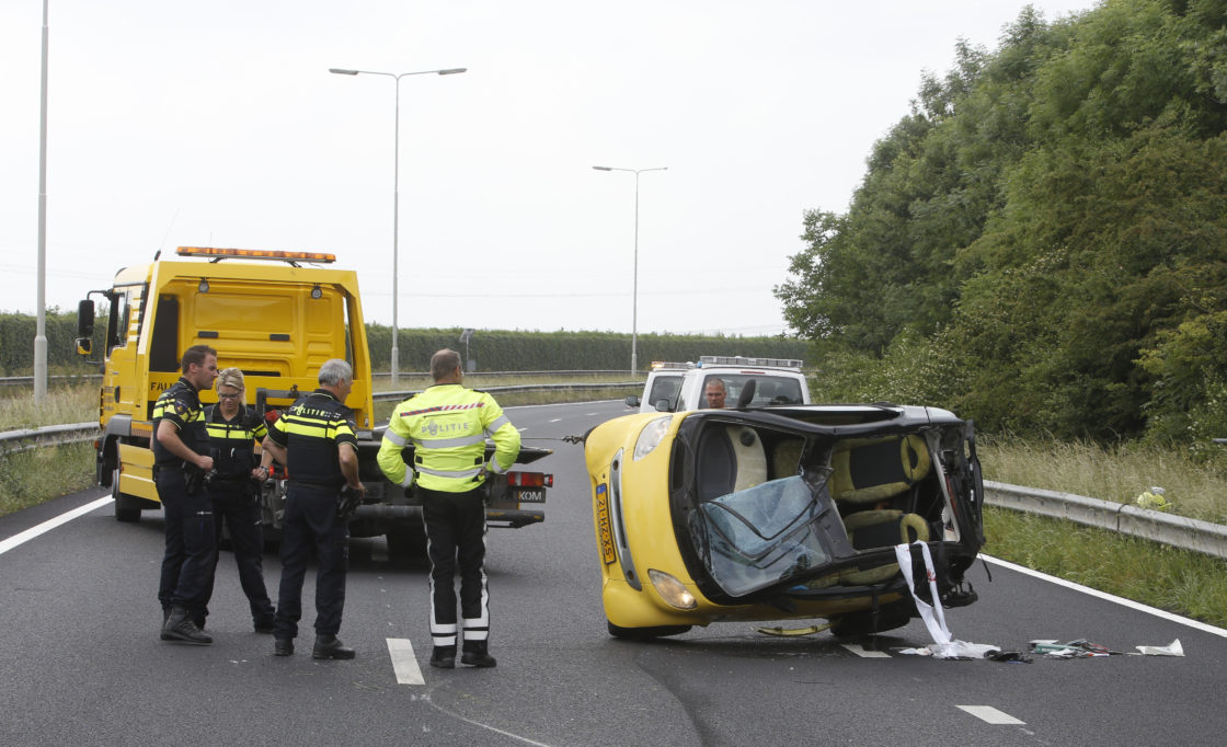 DORDRECHT – Op de N3 is dinsdag vroeg in middag een auto over de kop geslagen, ter hoogte van de wijk Wilgenwende, in de richting van de A16. De Smart werd geraakt door eenbestelbus van een koeriersdienst en sloeg over de kop. De bestuurder van de personenauto werd bevrijd en met onbekende verwondingen naar het ziekenhuis gebracht. Het ongeval zorgt op dit moment voor filevorming op de randweg in zuidelijke richting.(Foto en Video: Thymen Stolk)