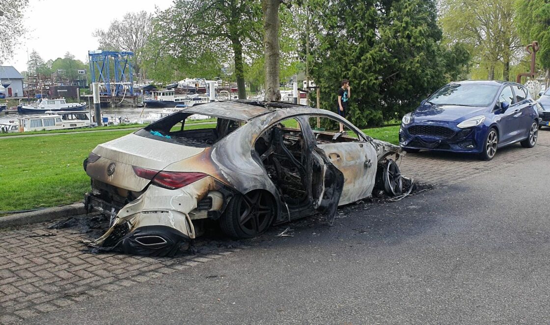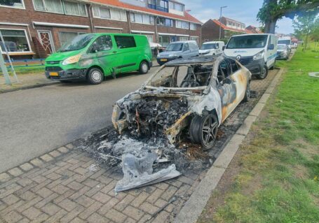 DORDRECHT – Aan de Maasstraat is zondag 9 mei een auto uitgebrand. Twee andere auto’s die in de buurt stonden liepen flinke beschadigingen op. De politie doet onderzoek naar de brand. (Foto’s en video: Thymen Stolk)