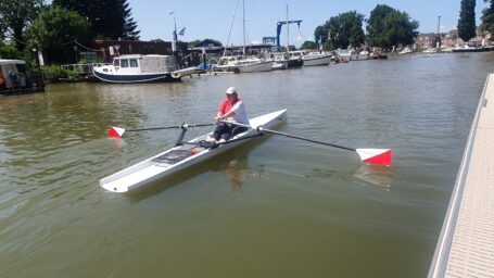 DORDRECHT – Bij de KDR&ZV zijn zaterdag twee vernieuwende roeiboten, zogenaamde Lite Boats, gedoopt. Deze boten zijn vernieuwend omdat ze door hun vorm stabieler zijn dan de huidige boten waar mee geroeid wordt. De onderkant is plat in plaats van rond. Ze zijn gemaakt van koolstof en carbon waardoor ze super licht zijn, maar door hun ligging op het water niet te licht, maar juist stabiel. De instap in deze Lite Boats is makkelijker dan in de huidige boten omdat er dieper in de boot op de bodem gestaan mag worden. De twee roeiers die er als eerste mee mochten roeien zijn erg enthousiast over het gemak waarmee je met deze lite boats weg roeit, hun wendbaarheid en stabiliteit op het water. Ook als er aardig wat golfslag is.