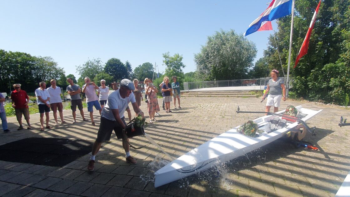 DORDRECHT – Bij de KDR&ZV zijn zaterdag twee vernieuwende roeiboten, zogenaamde Lite Boats, gedoopt. Deze boten zijn vernieuwend omdat ze door hun vorm stabieler zijn dan de huidige boten waar mee geroeid wordt. De onderkant is plat in plaats van rond. Ze zijn gemaakt van koolstof en carbon waardoor ze super licht zijn, maar door hun ligging op het water niet te licht, maar juist stabiel. De instap in deze Lite Boats is makkelijker dan in de huidige boten omdat er dieper in de boot op de bodem gestaan mag worden. De twee roeiers die er als eerste mee mochten roeien zijn erg enthousiast over het gemak waarmee je met deze lite boats weg roeit, hun wendbaarheid en stabiliteit op het water. Ook als er aardig wat golfslag is.