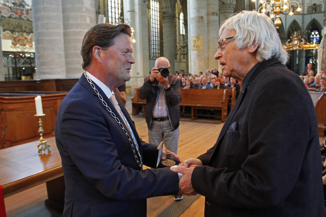DORDRECHT – De heer A.J. Keijzer, van 1976-1997 hoofdorganist van de Grote Kerk, is vrijdag onderscheiden met de bronzen erepenning van de stad Dordrecht. Wethouder Sleeking reikte hem uit tijdens een muzikale hommage aan de oud-organist, dat ter gelegenheid van zijn 85e verjaardag in de Grote Kerk werd georganiseerd. (Foto en Video : Thymen Stolk)