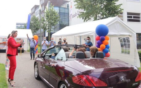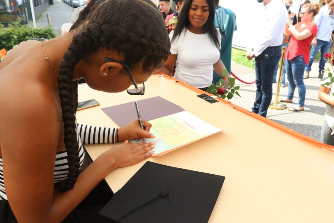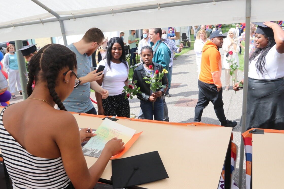DORDRECHT – Boks! Ook op het Insula College locatie Leerpark een alternatieve diploma-uitreiking. De leerlingen die geslaagd zijn voor het VMBO konden vrijdag in een Diploma Drive-in vanuit de auto hun diploma in ontvangst nemen.