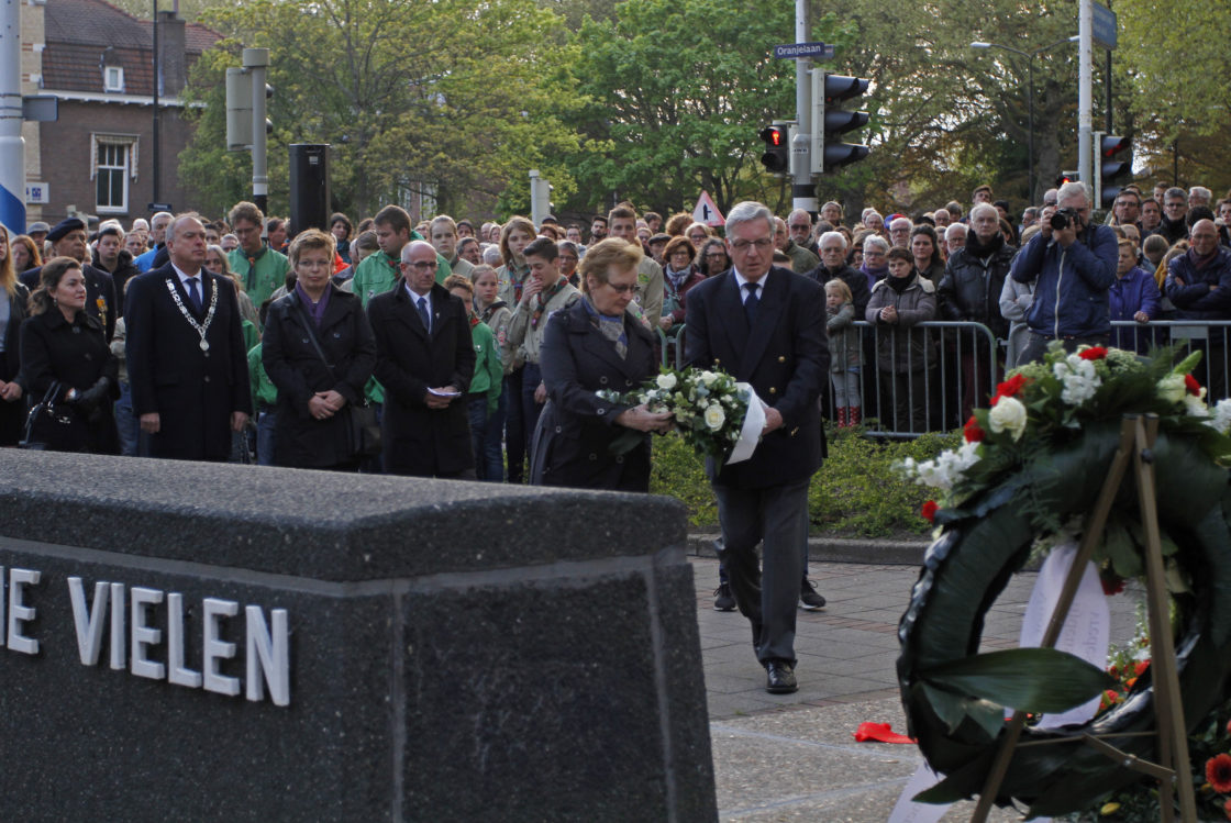 DORDRECHT – Op het Sumatraplein vond vanavond, 4 mei, traditiegetrouw Dodenherdenking plaats. Burgemeester Peter van der Velden legden samen met Nelleke de Smoker een krans bij het oorlogsmonument op het Sumatraplein. ( Foto en Video: Thymen Stolk)