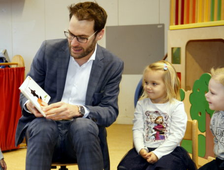 DORDRECHT – Voorlezen is leuk en gezellig, maar ook goed voor onder meer de taalontwikkeling van een kind. Tijdens de Nationale Voorleesdagen wordt er extra bij het voorlezen stil gestaan. Woensdag vond de aftrap plaats. Op De Regenboog kwam wethouder Peter Heijkoop gezellig een boekje voorlezen. ( Foto en Video: Thymen Stolk)