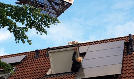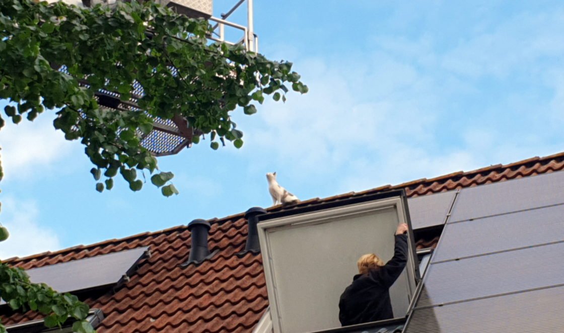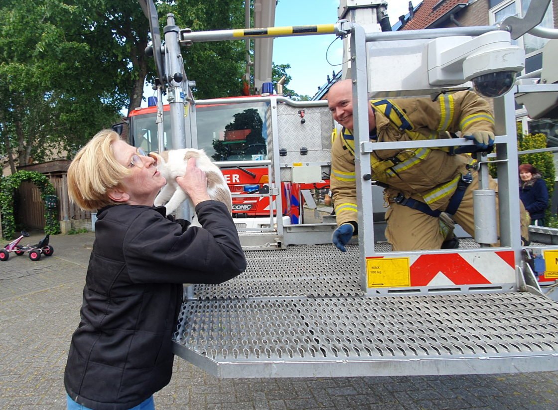 DORDRECHT – De brandweer rukte dinsdagmorgen uit naar het Suze Groeneweg-erf. Op het dak van een woning zat een jonge poes. Het dier werd aangevallen door kauwen als het bewoog. De brandweer zette een hoogwerker in om de kat van het dak te bevrijden. Het werd een soepele redding. De poes wachtte rustig af en stapte zelfs zelf de hoogwerker op. Beneden werd de kat met zijn eigenaar herenigd.