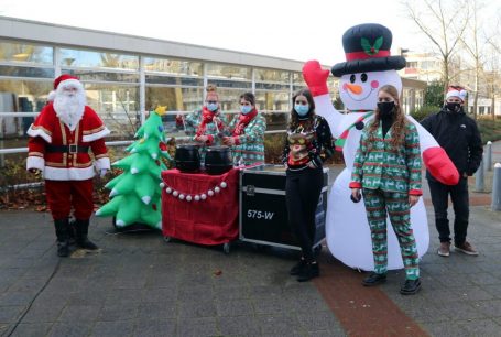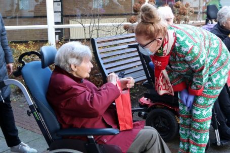 DORDRECHT – Wat een mooie kerstverrassing voor de cliënten van woonzorgcentrum Crabbehoven. Op eerste kerstdag draaide een dj kerstliederen voor de hoofdingang, en ’s middags in de binnentuin. Daarnaast deelde een kerstman goodiebags uit, met een stok om de anderhalve meter te kunnen waarborgen. Daarnaast werd glühwein en warme chocolademelk met slagroom geschonken met een lekker kerstkoekje. Een mooi extraatje tijdens de lockdown.