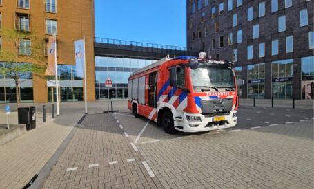 DORDRECHT – De brandweer rukte zaterdagavond 3 mei 2025 uit voor een brand in het Albert Schweitzer ziekenhuis in Dordrecht. Rond 18.15 uur was er brand ontstaan in een prullenbak. ( Foto en Video: Stolk Fotografie )