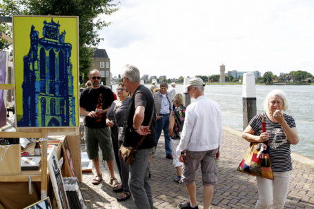 DORDRECHT – Liefhebbers van kunst en antiek konden afgelopen weekend hun hart ophalen in Dordrecht. Op en rond het Groothoofd was er zaterdag en zondag kunstmanifestatie Kunsthoofd en op zondag kon het maandelijkse Kunstrondje Dordt gewandeld worden en was er bij de Nieuwkerk de eveneens (zomer)maandelijkse Kunst- en Antiekmarkt, inclusief live-muziek en gezellig terras. Mede dankzij het niet verkeerde ‘slenterweer’ werden alle evenementen goed bezocht. (Foto: Thymen Stolk)
