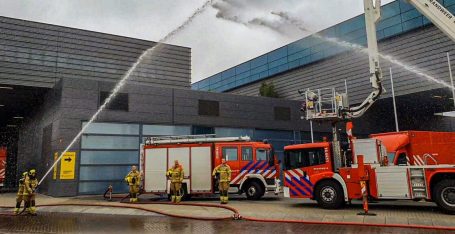 REGIO – Op de derde zaterdag van juni worden brandweermannen en -vrouwen herdacht die tijdens het werk zijn omgekomen. Bij veel kazernes hangt de brandweervlag halfstok en om 13.00 uur wordt een minuut lang een ereteken gemaakt. Twee brandweerspuiten worden zo opgesteld dat ze een ereboog van water vormen. Afgelopen zaterdag werden bij de kazernes in Dordrecht, Zwijndrecht en Papendrecht ook de omgekomen collega’s herdacht. (Foto en Video: Thymen Stolk)