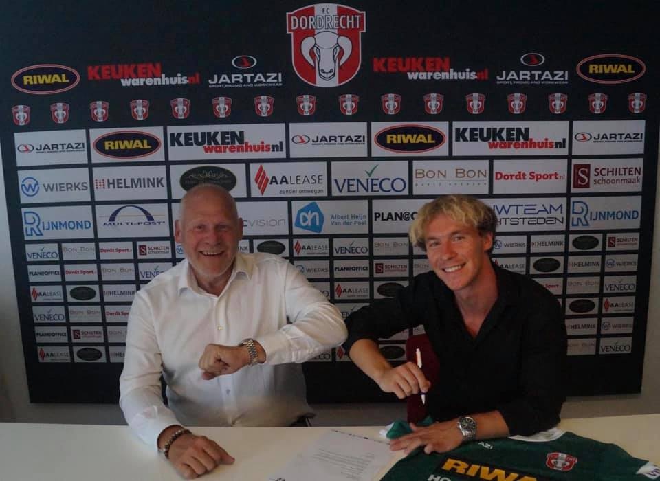 DORDRECHT – En dat is nummer vier, Donderdagochtend heeft Nikki Baggerman zijn handtekening gezet onder een tweejarige verbintenis bij FC Dordrecht. De middenvelder kwam het afgelopen seizoen in actie voor RKC Waalwijk en TEC. Baggerman heeft zijn jeugdopleiding genoten bij ADO Den Haag. Vervolgens vertrok de 22-jarige middenvelder naar RKC, waar hij zijn debuut maakte in het betaald voetbal. In totaal kwam Baggerman tot 56 optredens in actie voor de geel-blauwe hoofdmacht. In januari werd de controleur verhuurd aan tweede divisionist TEC. Nikki was onder de indruk van het oude stadscentrum, zo zei hij: “Ik sta in het centrum van Dordt en ik vind het prachtig. Ik heb er heel veel zin in!” (Foto: FC Dordrecht)