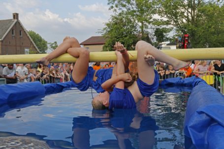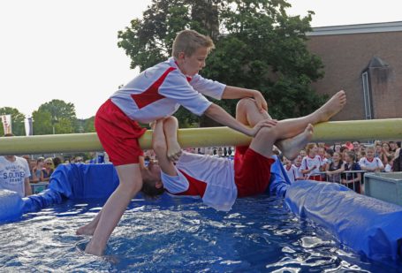 DORDRECHT – Leerlingen van groep acht van de Julianaschool, Beaxtrixschool en OBS Dubbeldam gingen elkaar afgelopen woensdagavond te lijf met kussens op een boegspriet boven het water. Het was het ouderwets gezellige begin van de activiteiten rondom Rommeldam, dat aanstaande zaterdag losbarst. Met prachtige zomerse temperaturen was het dit jaar minder akelig van de boegspriet geslagen te worden. Toch verzetten de leerlingen zich met hand en tand tegen een valpartij in het speciale voor dit evenement opgebouwde bassin. Enkelen hielden zich bijna een kwartier hangend en het fanatisme spatte er vanaf. (Video en foto’s: Thymen Stolk)