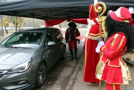 DORDRECHT – Alles is dit jaar anders. Ook het Sinterklaasfeest. Bij Bowling en Partycentrum de Merwehal is een speciale drive-thru gemaakt, waar de Sint en zijn Pieten zaterdag en zondag klaar stonden voor bezoek. Dat is ook komende vrijdag en zaterdag het geval. Bezoekers kunnen met de auto langskomen, een bestelling plaatsen bij de Wegwijspieten en dan door de drive-thru. Daar staat onder meer een perpernotenmachine die de kinderen (en hun ouders) op veilige afstand van pepernoten voorziet. Het zorgde voor de nodige hilariteit. Als de Sint is vertrokken verandert het in een Kerst Drive-thru, waar kerstmaaltijden (waaronder stamppotten en kalkoenen) besteld kunnen worden. Het gaat om een samenwerking tussen Bowling en Partycentrum de Merwehal en Fles & Mes catering. Kijk hier voor meer informatie. (Foto en video: Thymen Stolk)