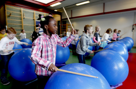 DORDRECHT – Gisteren is de Prins Bernhardschool aan de Willaertstraat gestart met het project Doe ff Gezond. De honderden kinderen kregen in de gymzaal als start een swingende work-out op een fitnessbal van 75 cm . De komende weken staat de school in het teken van Doe ff Gezond.( Foto en Video: Thymen Stolk)