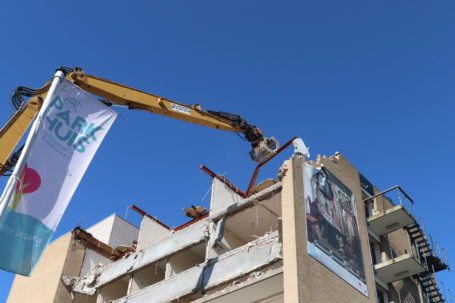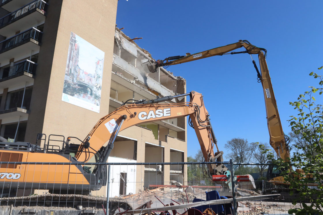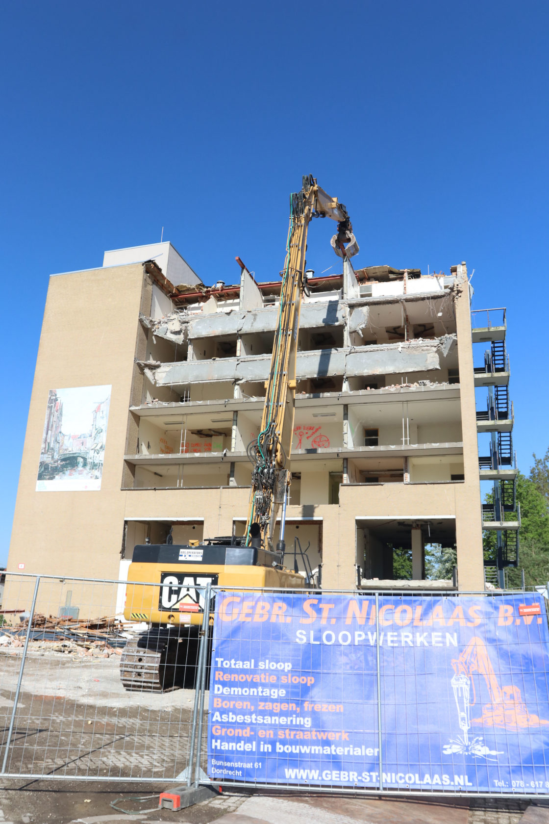 DORDRECHT – De sloop van de zusterflat van Het Parkhuis is gestart. Het Dordtse Gebr. St. Nicolaas zal de hoogbouw verwijderen. Op de plek van de voormalige zusterflat zullen wooneenheden komen voor de ruim honderd bewoners van Het Parkhuis.(Foto’s en Video: Thymen Stolk)