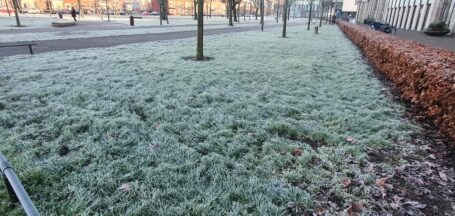 DORDRECHT – Een laagje rijp zorgde afgelopen zaterdag voor mooie winterse beelden. Lang kon er niet van worden genoten, want toen de zon begon te schijnen was de witte laag snel verdwenen. Op een aantal plekken bleef het ijs wel een tijd liggen, zoals in de Merwelanden. Daar werd zaterdag door veel mensen een winterse wandeling gemaakt. Vanuit de Merwelanden kwam de fotograaf van Dordt Centraal ook langs het afvalbrengstation aan de Baanhoekweg. Ook daar waren veel mensen om afval weg te brengen. (Foto’s: Thymen Stolk)