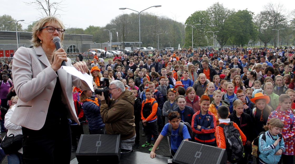 ZWIJNDRECHT – In het Develpark vond vrijdag de tweede editie van de Zwijndrechtse Koningsspelen plaats. Zeker zestien basisscholen uit Zwijndrecht, ruim 1500 kinderen, deden mee aan deze dag vol koningsactiviteiten die in het teken stond van spelen, sport, gezondheid en gezelligheid.