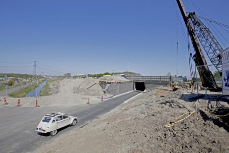 DORDRECHT – Rond de A16 bij Dordrecht vinden volop werkzaamheden plaats. Het viaduct onder de A16 bij de Wieldrechtse Zeedijk wordt vernieuwd, er wordt een nieuwe weg aangelegd naar de tuinhuisjes achter de Rijksstraatweg en, de voor automobilisten meest in het oog springende activiteit, de nieuwe parallelweg langs de snelweg in de richting van Moerdijk en het nieuwe bedrijventerrein DistriPark Dordrecht (Dordtse Kil 4) wordt aangelegd. (Foto’s: Thymen Stolk)