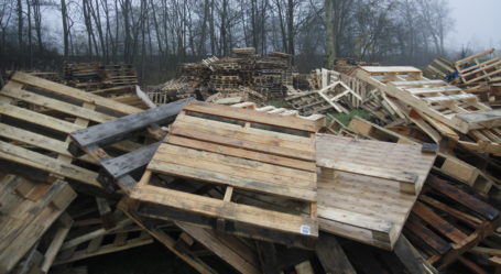 DORDRECHT – Honderden pallets liggen al opgestapeld voor het traditionele vreugdevuur van de Zeehavenbuurt aan de Sportlaan. (Foto en video: Thymen Stolk)