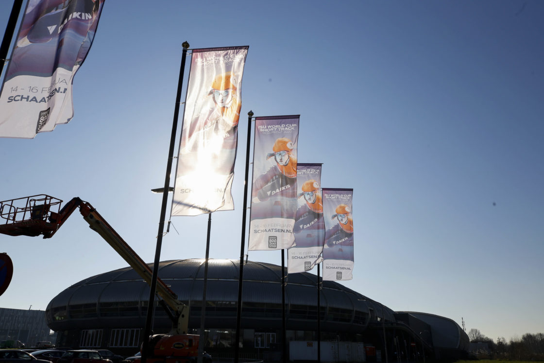 DORDRECHT – De eerste voorbereidingen voor de finale-editie van de World Cup Shorttrack in de Dordtse Sportboulevard zijn gestart. De shorttrackers komen dit weekend nog in actie in Dresden. Over precies een week zijn de Nederlandse shorttrackers actief in Dordrecht. Meer informatie en kaartverkoop: www.schaatsen.nl. ( Foto’s: Thymen Stolk )