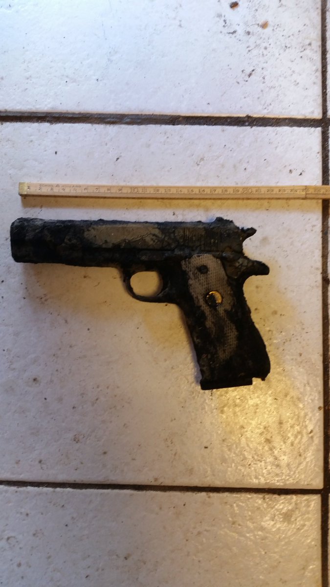 DORDRECHT – Gisteren heeft een 34-jarige man uit Dordrecht in het Wantij een vuurwapen aangetroffen. De man die aan het magneetvissen was ter hoogte van de Aart Alblasbrug aan de Generaal Spoorstraat nam het vuurwapen mee in zijn fietstas en belde dinsdagochtend de politie. Buiten het vuurwapen haalde de man ook nog twee aardappelmesjes boven water. De politie heeft het vuurwapen in beslag genomen en laat weten dat het nog onduidelijk is of het ooit gebruikt. ( Foto: Politie Dordrecht)