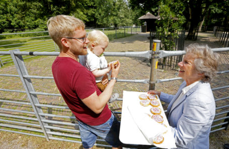 DORDRECHT – In Park Merwestein zijn inmiddels vijf damhertjes geboren. Vandaag trakteerde wethouder Rinette Reynvaan bezoekers van het park op beschuit met muisjes . ( Foto’s en Video: Thymen Stolk )