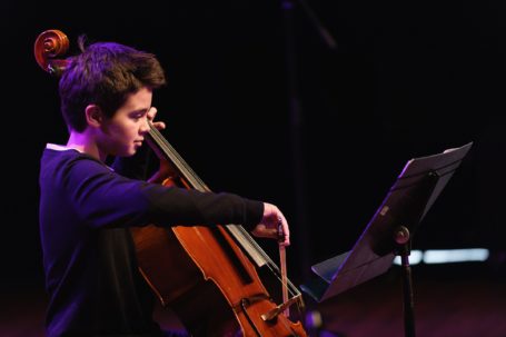 Voor deze editie hebben zich twaalf muzikale talenten, ook niet-ToBe leerlingen, ingeschreven. De jongste soliste is 10 jaar en staat in haar eentje, met viool, op het grote podium van Ketel 2. (Foto: ToBe Solisten Concours 2020 deelnemer 2019 – fotografie Danny van der Weck).