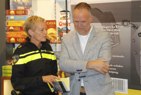 DORDRECHT – De Dubbeldamse wijkagent Jan Kleijer presenteerde gisteren zijn boek Yellow Black. Het eerste exemplaar werd door burgemeester Brok in ontvangst genomen bij Boekhandel Vos & van der Leer. In Yellow Black zijn 31 verhaaltjes van zijn hand gebundeld. “Om te laten zien hoe leuk mijn vak is.” Zijn vader Reijer